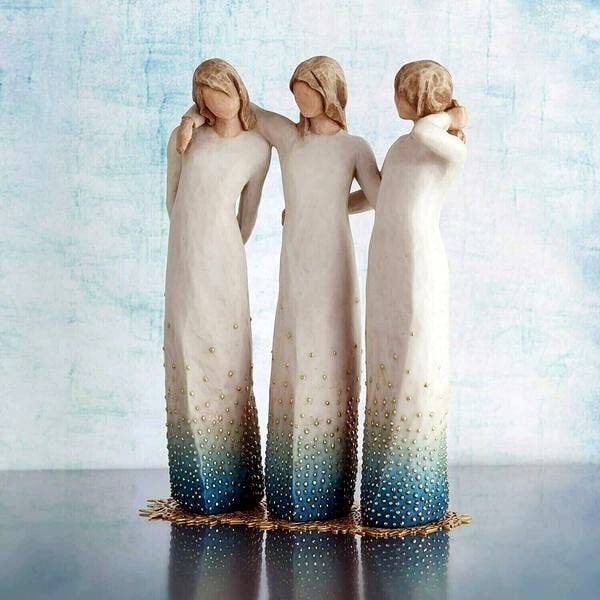 Three-sister figures communicate the close and loving relationships between three sisters, cousins, or great friends. Women who encourage and support each other through all of life's experiences.